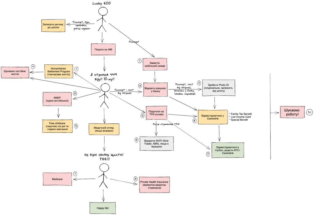 Відгуки громади свідчать про те, що заявку на 866 Protection візу важко зрозуміти та вона складна. Щоб допомогти нашим українським переміщеним особам (ПО) орієнтуватися у візовому процесі, СУОА співпрацює з Refugee Legal, яка готова допомогти заповнити заяви та надати безкоштовну юридичну консультацію.